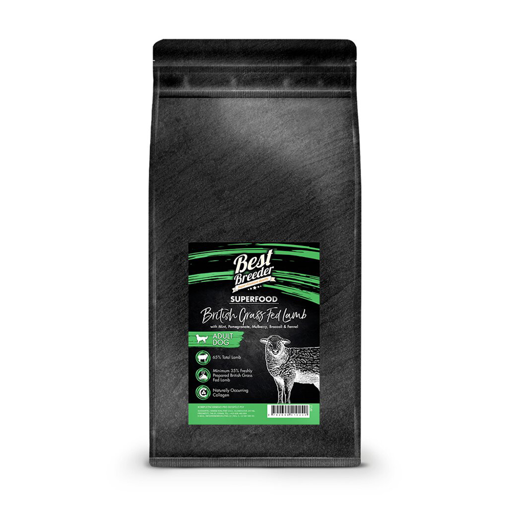 ? Čerstvě připravené britské jehně (minimálně 35 %) obsahuje přirozeně se vyskytující kolagen. ? Poskytuje důležité stavební kameny pro tělo. ? Pomáhá udržovat zdravé kosti, klouby a kůži. 65 % jehněčí (35 % čerstvě připravené britské jehněčí, 22 % sušené jehněčí , 5 % jehněčí tuk, 3 % jehněčí omáčka), batáty, fazole, řepná dužina, sušená směs superpotravin* (máta, granátové jablko, moruše, brokolice, fenykl), doplněk Omega 3, minerály, fruktooligosacharidy (175 mg/kg), mannanoligosacharidy (50 mg/kg), olivovy´ extrakt (0,01 %)