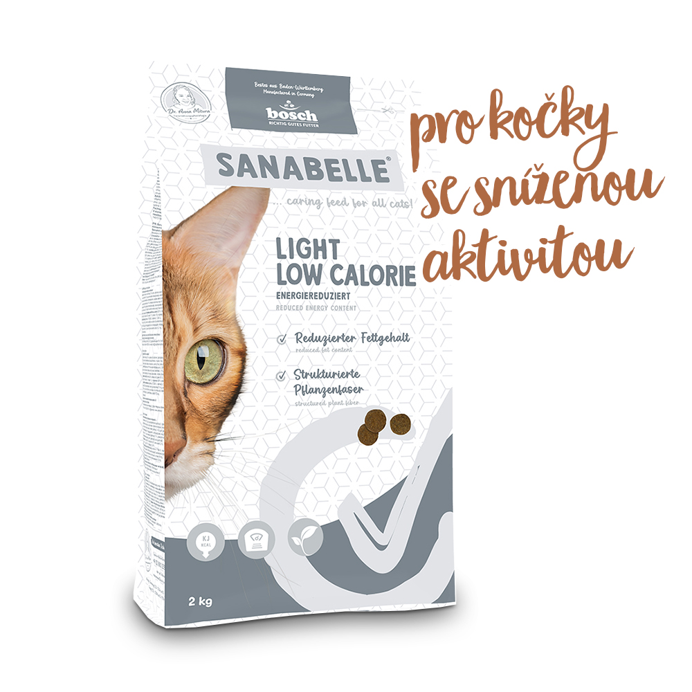 Nadváha může významně ovlivnit kvalitu života vaší kočky – ať už omezenou pohyblivostí, zvýšeným rizikem sekundárních onemocnění nebo jednoduše sníženým pocitem pohody. Sanabelle Light - Nízkokalorické bylo speciálně vyvinuto pro kočky s nadváhou nebo méně aktivní kočky, aby poskytovalo cílenou podporu regulace hmotnosti – udržitelně, vyváženě a s nutričním profilem, který pokrývá všechny potřeby vaší kočky. ---
