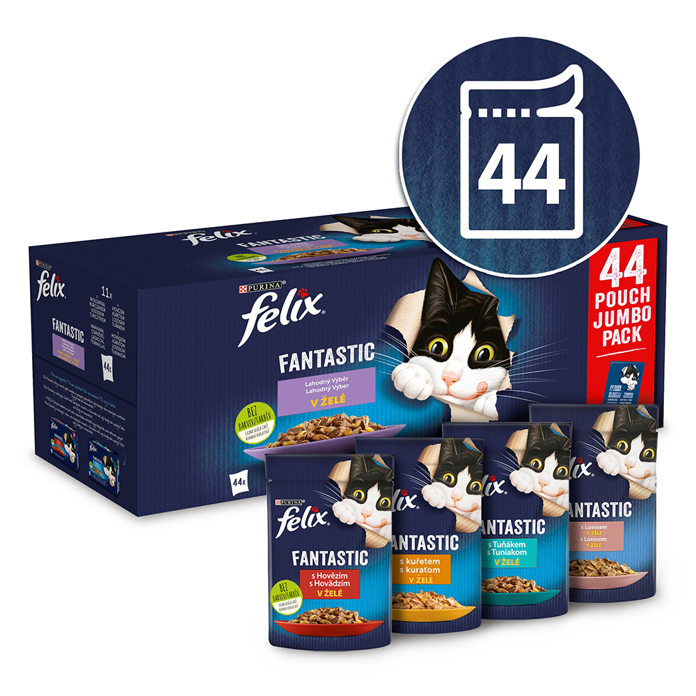 FELIX® Fantastic je řada neodolatelných krmiv, která vypadají, voní a chutnají tak lahodně, jako jídlo, které byste sami uvařili. Každá receptura, vyrobená z kvalitních surovin, obsahuje křehké kousky v želé, aby se vaše kočka mohla do chutného krmiva pořádně zakousnout! Zároveň jsou zdrojem omega-6 mastných kyselin a mají správnou kombinaci vitamínů, aby udržely vaši kočku plnou energie a připravenou k uličnictví! Jsou plná dobrot a uspokojí 100 % denních potřeb vaší kočky, když jsou podávána podle krmného návodu. To není všechno! FELIX Fantastic je dostupný v široké řadě lahodných receptur ve šťavnatém želé, aby každý den uspokojil lásku vaší kočky po rozmanitosti. Opravdu chutnají tak dobře, jak vypadají! FELIX je prostě neodolatelný!