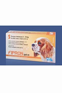 Psi o hmotnosti 2-10 kg - obsah jedné tuby o objemu 0,67 ml (S). Napomáhá také při léčbě alergie na bleší kousnutí. Účinnost proti napadení blechami po dobu 2 měsíců, proti přisátí klíšťaty po dobu 1 měsíce. Balení obsahuje 1 pipetu. Přípravek nebrání přichycení klíšťat k zvířeti. Jestliže bylo zvíře ošetřeno před napadení klíšťaty, budou klíšťata usmrcena v prvních 24-48 hodinách po přichycení. To se většinou stane před nasátím, čímž je riziko přenosu infekčních chorob minimalizováno. Složení: Fipronilum 134 mg v 1 pipetě 1,34 ml, Butylhydroxyanisolum, Butylhydroxytoluenum, Povidonum K-16,5, Polysorbatum 80, Ethanolum 96%, Diethylenglycoli monoethylether. Upozornění: Nepoužívejte u štěňat mladších 2 měsíců a/anebo u psů vážících méně než 1 kg. Nevhodné k použití u nemocných zvířat nebo zvířat v rekonvalescenci. Nepoužívejte v případě přecitlivělosti na léčivou látku nebo na některou z pomocných látek. Použití v průběhu březosti nebo laktace pouze po doporučení veterinárním lékařem. Vyvarujte se častému koupání/namáčení ve vodě nebo šamponování zvířete. Použití: Rozhrňte srst zvířete tak, aby byla vidět kůže. Přiložte hrot pipety na kůži, jemně pipetu stlačte a vyprázdněte její obsah mezi lopatky psa. Stlačte pipetu vícekrát pro ujištění, že je dávka kompletní. V případě nadměrného zvlhčení srsti přípravkem se může vytvořit mastná skvrna v místě ošetření. Skvrna zmizí do 24 hodin po aplikaci. Přípravek aplikujte na místo, kde si jej zvíře nemůže olízat a zajistěte, aby si jej zvířata po ošetření neolizovala navzájem. Neaplikujte na rány nebo poškozenou kůži. Nemanipulujte s ošetřenými zvířaty a zamezte kontaktu dětí s nimi, dokud aplikovaný přípravek nezaschne.
