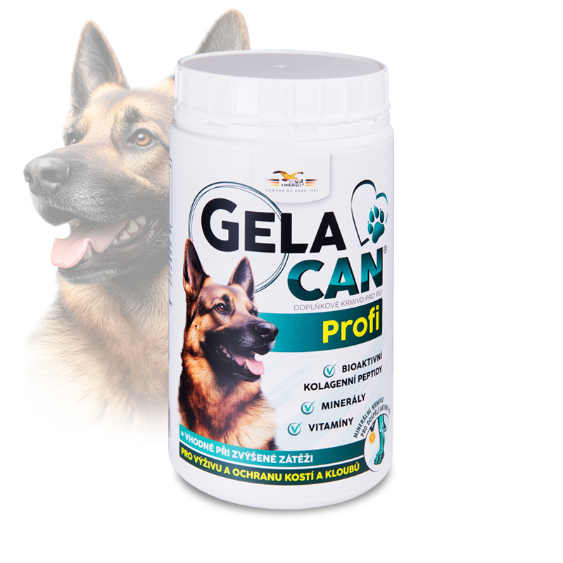 Gelacan® Profi je vhodný zejména: • pro regeneraci kloubních chrupavek • při dekalcifikaci skeletu • pro výživu, regeneraci a posílení kloubů, kostí, vazů a šlach Bioaktivní kolagenní peptidy zvyšují syntézu kolagenu, vyživují a regenerují kloubní chrupavky, šlachy, vazy a kosti a zmírňují tak následky předchozí nedostatečné výživy nebo poškození kloubů, zabraňují dalšímu úbytku chrupavek a zlepšují pohyblivost kloubů. Kolagen představuje základní hmotu kloubní chrupavky a podmiňuje její mechanické vlastnosti, především pevnost a pružnost. Kolagenní peptidy ovlivňují činnost buněk směrem k syntéze fyziologického typu kolagenu a zvyšují syntézu kloubního kolagenu o 100 % už během 11 dnů. Kostitvorné minerální látky vápník, fosfor a hořčík zajišťují správnou výživu skeletu psa a zabraňují dekalcifikaci probíhající na základě stresu a mechanického zatěžování skeletu. Tyto minerální látky jsou obsaženy ve vysoce využitelných formách v poměru Ca : P 1,25 : 1 a Ca : Mg 5 : 1. Zdrojem vápníku v Gelacanu Profi je Aquamin® – přírodní multiminerální komplex získaný z červených mořských řas Lithothamnium sp. Aquamin® je bohatý na vápník ale obsahuje i hořčík a celou řadu dalších minerálních látek a stopových prvků. Unikátní složení a zvláštní pórovitá struktura Aquaminu® zajišťuje vysokou biologickou aktivitu a využitelnost vápníku pro organismus. Aquamin® pomáhá zlepšovat hustotu kostí a v pozdějším věku chrání společně s kolagenem organismus psa před ztrátami kostní hmoty. Selen spolu s vitamínem E mají velký význam pro budování a funkci svalového systému. Vitamín C je důležitý pro normální produkci a funkci všech pojivových tkání, podporuje imunitu a pomáhá odstraňovat únavu. Složení: litothamnium (zvápenatělé mořské řasy), kolagen hydrolyzovaný (31 %), dihydrogenfosforečnan sodný, oxid hořečnatý Doplňkové látky v 1 kg - nutriční doplňkové látky: selen 800 µg (Sel-Plex®- organická forma selenu, kterou produkují Saccharomyces cerevisiae CNCM I-3060, L-selenomethionin), beta-karoten 40 mg, vitamin C 10000 mg, vitamin E 800 mg Analytické složky: vápník 10 %, sodík 6 %, fosfor 7 % Složení v denní dávce na 10 kg psa: bioaktivní kolagenní peptidy 1870 mg, vápník 590 mg, fosfor 480 mg, hořčík 120 mg, selen 4,8 µg, provitamín A - beta-karoten 240 µg, vitamín C 60 mg, vitamín E 4,8 mg Doporučené dávkování: 6 g na 10 kg hmotnosti psa Krmný návod: Přípravek podávejte k omezení potíží pohybového aparátu psů. Odměříme denní dávku dle hmotnosti psa. Celé množství rozdělíme dle počtu krmení a do každého přidáváme část odměřeného množství přípravku. Přípravek nasypeme do krmení a zalijeme přiměřeným množstvím vody, aby došlo ke vmísení přípravku do krmiva. Podávání začínáme menším množstvím, aby si pes zvykl přípravek přijímat v každém krmení. Postupně dávku zvyšujeme až dosáhneme plné dávky dle hmotnosti psa. Přípravek je vhodné podávat denně v průběhu sportovní přípravy i závodní či pracovní zátěže. Způsob skladování: Uchovávejte v chladu a v suchu. Vyrábí: Orling s.r.o., Na Bělisku 1352, 562 01 Ústí nad Orlicí, Česká republika, tel.: +420 465 523 414, e-mail: orling@orling.cz, www.orling.cz Schvalovací číslo provozu: ?CZ 800358-01