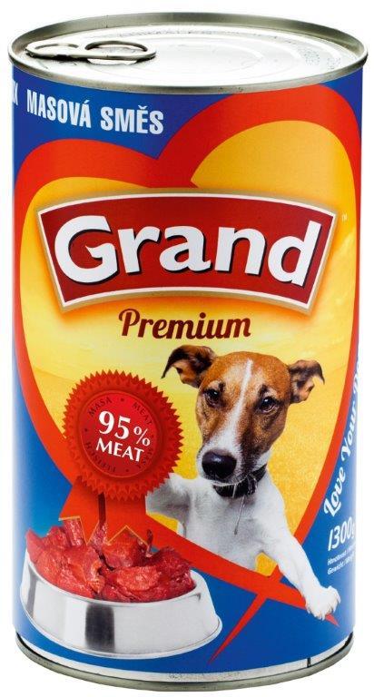 Při výrobě se používá výhradně čerstvé maso. Konzervy Grand obsahují pouze maso a max. 2% rýžové mouky pro zahuštění. Receptura vyvinuta pod veterinárním dohledem je zcela bez obsahu sóji, chemických dochucovadel, konzervatnů a barviv. Obsah čistého masa je 50%. Tuzemská značka Grand má základ výhradně v čerstvém mase. Nejsou použity chemické příměsy, konzervační látky ani jiné umělé přísady. Do konzerv je přidávána rýžová mouka v maximální míře 0-2 % z důvodu zahuštění masové složky, nikoliv kvůli nastavení masové složky. Konzervy Grand jsou tedy opravdu masové. Složení: 45% drůbeží maso, 53% vedlejší jatečné produkty, 2% rýžová mouka Deklarované jakostní znaky: Vlhkost 71%, dusíkaté látky 16%, tuk 9,8%, popel 3%, vláknina 1%, vápník 1%.
