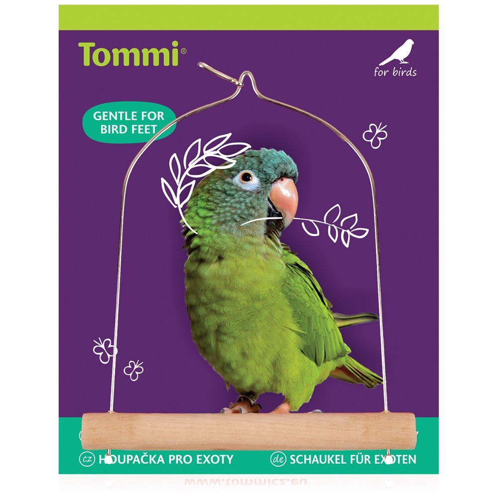 Hračka - houpačka vhodná pro střední exoty. Přináší spoustu zábavy Vám i Vašemu miláčkovi. Materiál: dřevo + kov Délka bidýlka: 17,5cm Celková výška: 24cm
