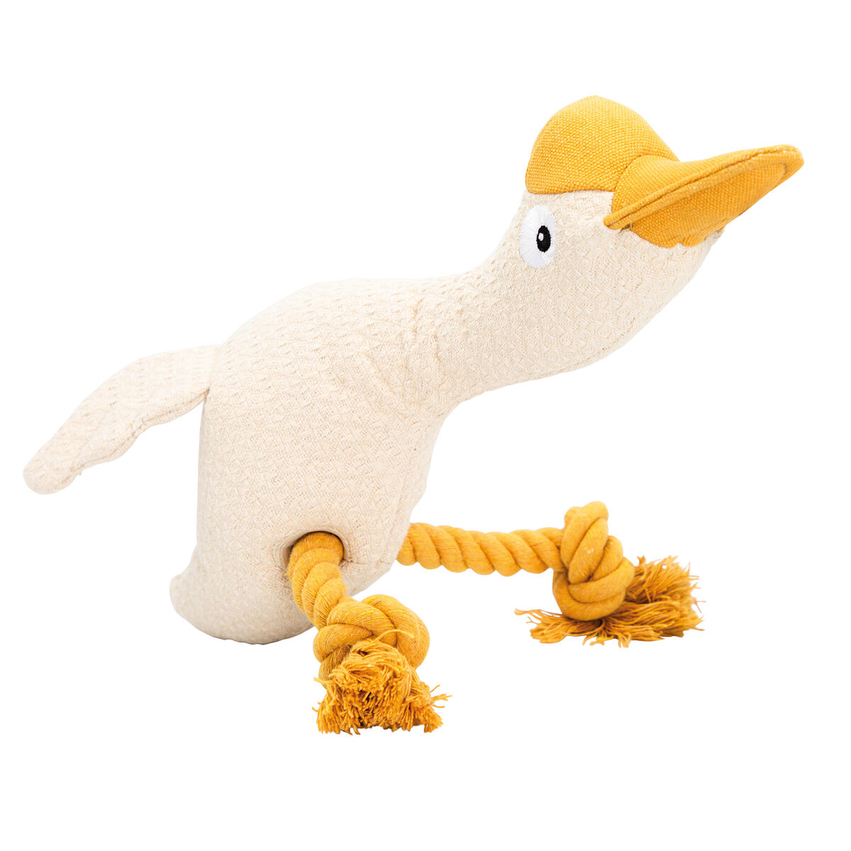 Husa, 29 cm, látková robustní hračka s bavlněnými uzly, HIPHOP DOG, krémová/hořčicová