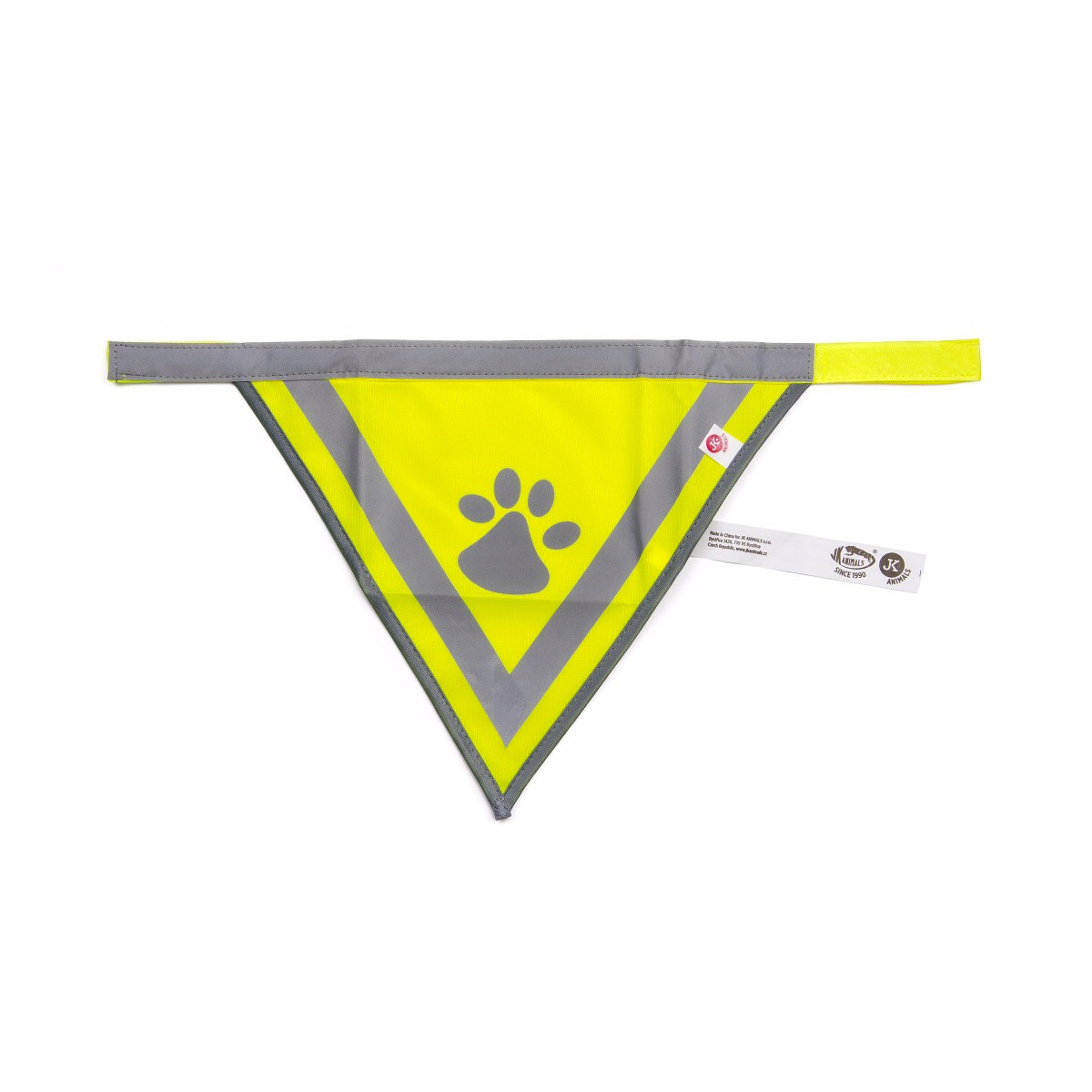 UŠPINĚNÝ Reflexní bezpečnostní šátek pro psy má jasné barvy a reflexní prvky.