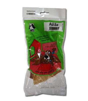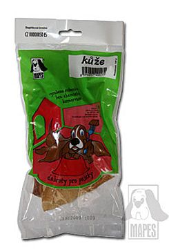 Vepřová kůže je zbavena viditelného tuku. Má vysoký obsah kolagenu a elastinu, tak důležitého k udržení zdravých kloubů. Na rozdíl od jiných výrobků s vysokým obsahem kolagenu nevyžadují kůže tak vysokou aktivitu psa při jejich kousání. Jsou proto vhodné pro pejsky, kteří přijímají potravu neochotně. Složení: proteiny: 49,8%, popeloviny: 1,07%, vlhkost: 6,81%, tuky: 42,1%