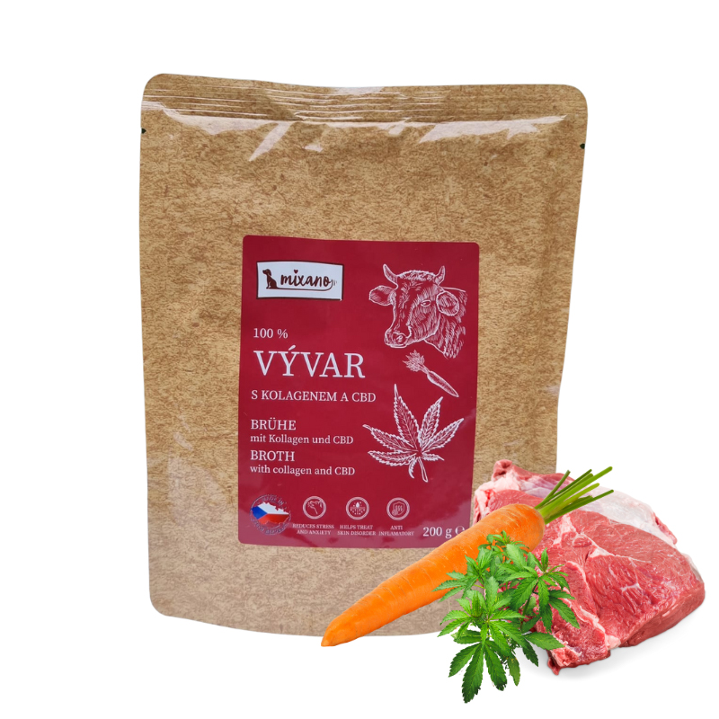 CBD je pro psy v kombinaci s vývarem bohatým na kolagen skvělým doplňkem pro zdraví a pohodu vašeho psa.
