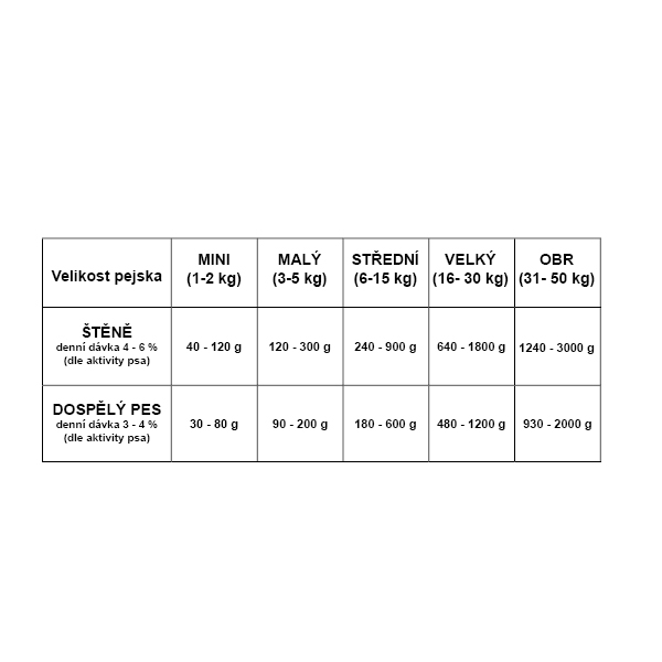 Dávkování vždy přizpůsobte tělesné kondici a aktivitě pejska. ---
