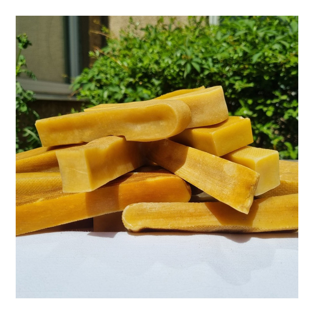 Tyčky jsou ručně vyráběny v Nepálu, a to přímo v himalájských kopcích z mléka tamních jaků. Aby získaly svou jedinečnou chuť a strukturu, suší se dýmem minimálně po dobu 1 měsíce. Pamlsky navíc neobsahují laktózu, lepek, obiloviny ani žádné přidané konzervační látky. Díky tomu jsou pro pejsky velmi lehce stravitelné a nezatěžují jejich trávicí ústrojí. ---