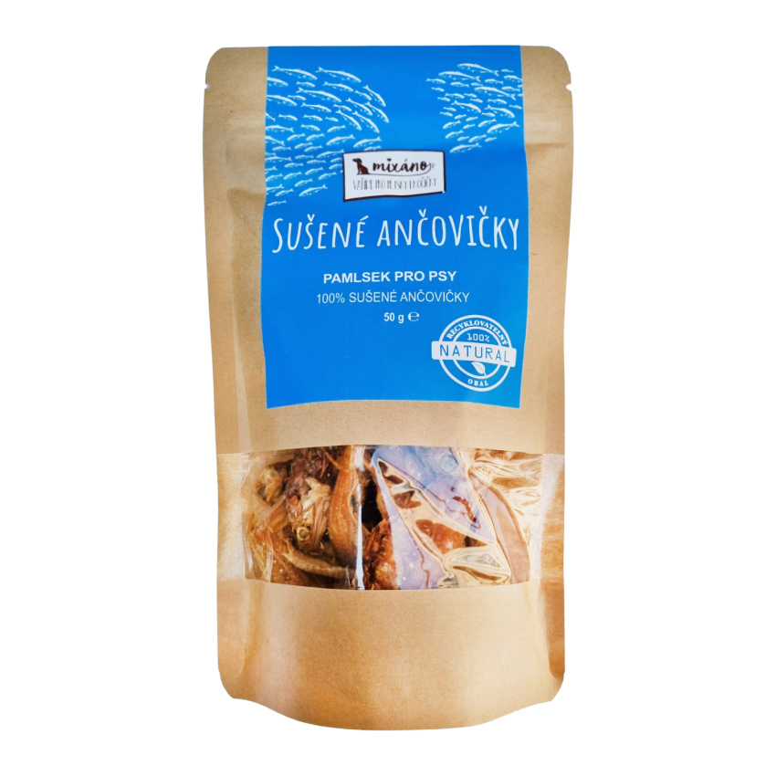 Sušené ančovičky jsou vhodné jak pro pejsky, tak pro kočičky. Poslouží jako chutná svačinka mezi krmením nebo jako odměna při tréninku vašeho mazlíčka. Jsou přitom vhodným pamlskem i pro menší plemena. Obsahují omega 3 mastné kyseliny, železo, vápník a také spoustu bílkovin. Díky svému složení se proto hodí pro pejsky trpící potravinovými alergiemi či intolerancemi, ale i pro ty s citlivým trávením. Využít je můžete i v případě, že se při krmení zaměřujete na metodu BARF. Složení: 100 % sušené Ančovičky Hmotnost: 50 g