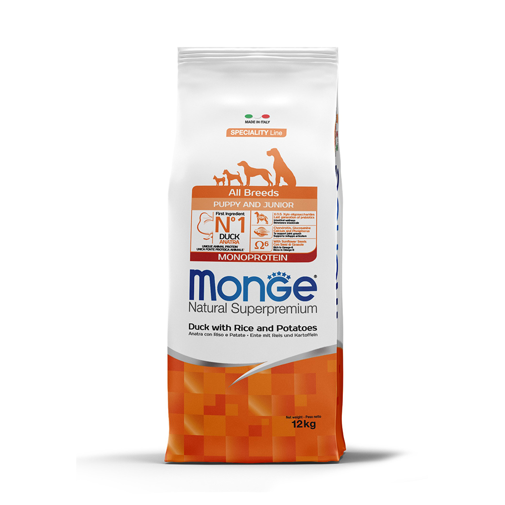 MONGE DOG PUPPY & JUNIOR kachna, rýže, brambory 12kg