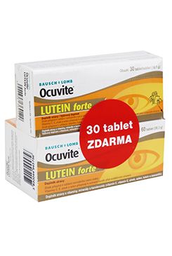 Ocuvite Lutein forte je doplněk stravy, který pomáhá k udržení normálního stavu zraku. Obsahuje kombinaci vitaminů, minerály, lutein a zeaxantin.Vitamin C přispívá k ochraně buněk před oxidativním stresem.Vitamin E přispívá k ochraně buněk před oxidativním stresem.Zinek přispívá k normálnímu udržení stavu zraku.Selen přispívá k ochraně buněk před oxidativním stresem.Dávkování a způsob užitíDoporučená dávka je 1-2 tablety denně.Složení:Přípravek obsahuje vitamin C 60 mg, vitamin E 8,8 mg, lutein 6 mg, zinek 5 mg, zeaxanthin 0,5 mg a selen 20 µg v jedné tabletě.