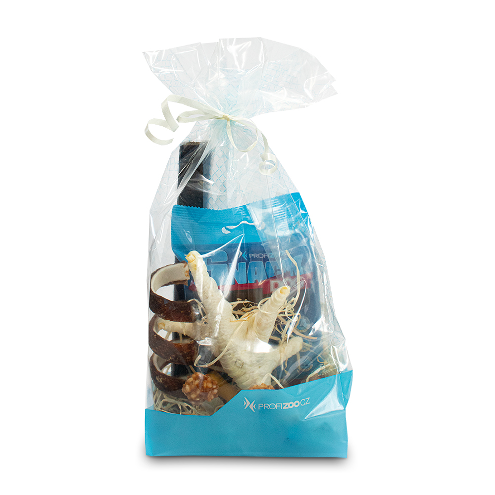 Obdarujte Vašeho mazlíčka jedinečným dárkem plným chutí a neodolatelných vůní. Balíček se spoustou vynikajících dobrot, kterými mu uděláte radost a zároveň si skvěle pochutná. Jedlý dárek vždy potěší a nadšení z rozbalování a ochutnávání Vaším psem bude jistě zábavou i pro Vás. PROFIZOO Vánoční balíček pro psy