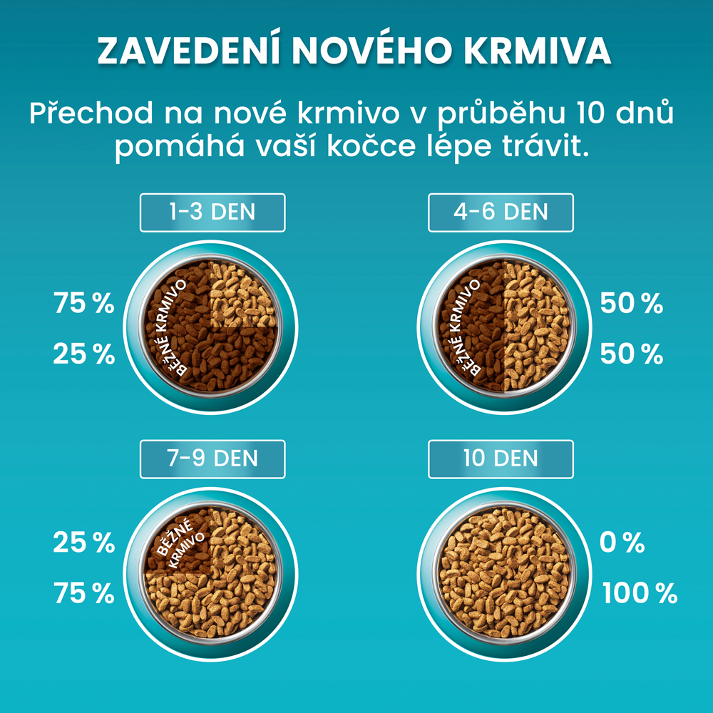 Krmný návod: Doporučená denní krmná dávka (g/den): hmotnost kočky 4-6 kg: 55-80 g, hmotnost kočky 6-8 kg: 80-105 g, hmotnost kočky 8-10 kg: 105-130 g. Objevte také vysoce kvalitní výživu v kapsičkách Purina ONE - lahodné receptury vyvinuté pro specifické potřeby vaší kočky. Doporučené denní krmné dávky by měly být přizpůsobeny klimatickým podmínkám, úrovni aktivity a fyzické kondici kočky. Čistá čerstvá pitná voda by měla být vždy k dispozici. Hovězí plíce (16 %), sušené drůbeží bílkoviny, pšenice (14 %), sójová mouka, kukuřice, moučka z kukuřičné bílkoviny, živočišné tuky, pšeničný lepek, sušená řepná dužina, sušený čekankový kořen (2 %), sušená rostlinná vláknina, minerální látky, dochucovací masové výtažky (s přidanými tepelně ošetřenými bakteriemi Lactobacillus Delbrueckii a Fermentum v prášku 0,025 %), kvasnice. Doplňkové látky: Nutriční doplňkové látky:, m.j./kg:, vit A:: 1320, vit D3:: 185, vit E:: 200, mg/kg:, 3b103:: (Fe: 16), 3b202:: (I: 0,47), 3b405:: (Cu: 1,2), 3b503:: (Mn: 2,2), 3b605:: (Zn: 23), 3a370:: 600, Zchutňující látky. Analytické složky:, vlhkost:: 77,5 %, protein:: 13,5 %, obsah tuku:: 2,8 %, obsah anorganických látek:: 2,6 %, hrubá vláknina:: 0,8 %.