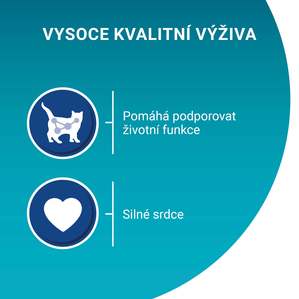 Krmný návod: Dospělou kočku o průměrné hmotnosti (4 kg), která je ve věku 7-11 let, krmte 3 kapsičkami denně, kočku starší 11 let krmte 4 kapsičkami denně, nejméně ve 2 samostatných dávkách. Doporučené denní krmné dávky by měly být přizpůsobeny klimatickým podmínkám, úrovni aktivity a fyzické kondici kočky. Podávejte při pokojové teplotě. Čistá čerstvá pitná voda by měla být vždy k dispozici. Maso a výrobky živočišného původu (z toho hovězí 5 %), bílkovinné extrakty rostlinného původu, ryby a vedlejší výrobky z ryb, oleje a tuky, minerální látky, vedlejší výrobky rostlinného původu, zeleniny (0,6 % sušené mrkve, odpovídá 5,4 % mrkve), cukry. Doplňkové látky: Nutriční doplňkové látky:, m.j./kg:, vit A:: 1320, vit D3:: 185, vit E:: 200, mg/kg:, 3b103:: (Fe: 16), 3b202:: (I: 0,47), 3b405:: (Cu: 1,2), 3b503:: (Mn: 2,2), 3b605:: (Zn: 23), 3a370:: 600, Zchutňující látky,. Analytické složky:, vlhkost:: 77,5 %, protein:: 13,5 %, obsah tuku:: 2,8 %, obsah anorganických látek:: 2,6 %, hrubá vláknina:: 0,8 %.
