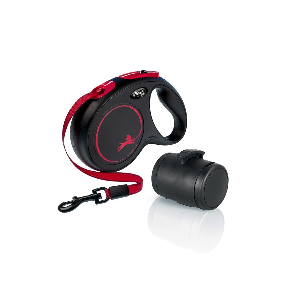 Vodítko umožňuje plynulé natažení až do délky 5 metrů a typický flexi navíjecí systém zajišťuje hladký chod bez zadrhnutí či zamotání pásku. Je určeno pro psy do 25 kg.
