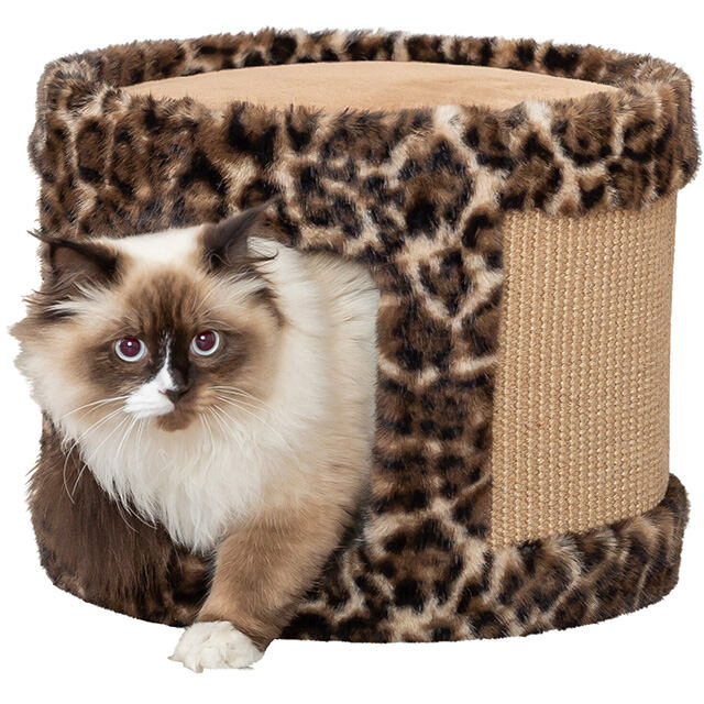 Škrabací jeskyně LEO, ø 38 x 30 cm, hnědá/leopardí